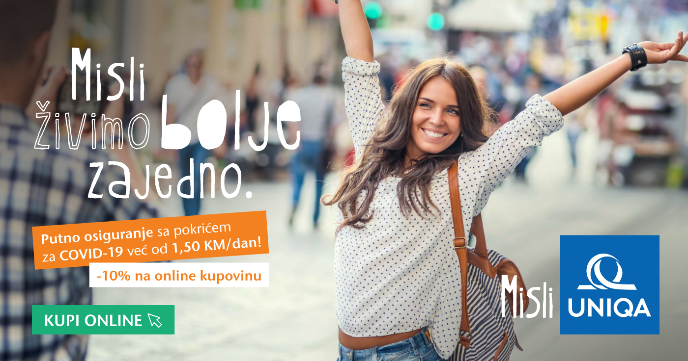 Vrijedi učiniti i još taj zadnji mali korak da bi vaše solo putovanje bilo potpuno opušteno – izvadite putničko zdravstveno osiguranje! Sa UNIQA polisom putnog zdravstvenog osiguranja već od 1,5 KM preuzimamo kompletnu brigu o vašem zdravlju na putovanju. Velika je vjerovatnoća da vam se ništa neugodno neće desiti na putovanju, ali dovoljan je i neki „običan“ problem, poput iznenadne upale zuba koja zahtijeva stomatološki tretman, da vam pokvari putovanje. UNIQA putno zdravstveno osiguranje će vas osigurati od troškova u takvom slučaju, kao i za razne druge slučajeve poput ambulantnog liječenja, lijekova i pomagala ili medicinskog transporta. Uz to, za online kupovinu polise putničkog zdravstvenog osiguranja dobit ćete i popust od 10%!